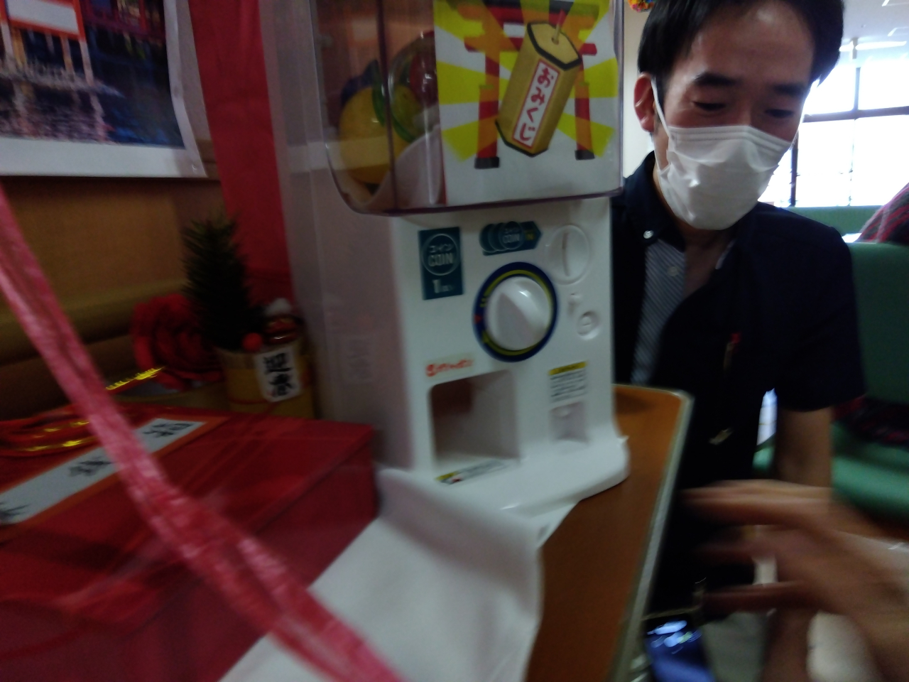 職員手作りの神社に初詣。おみくじガチャで今年最初の運試しで笑い…