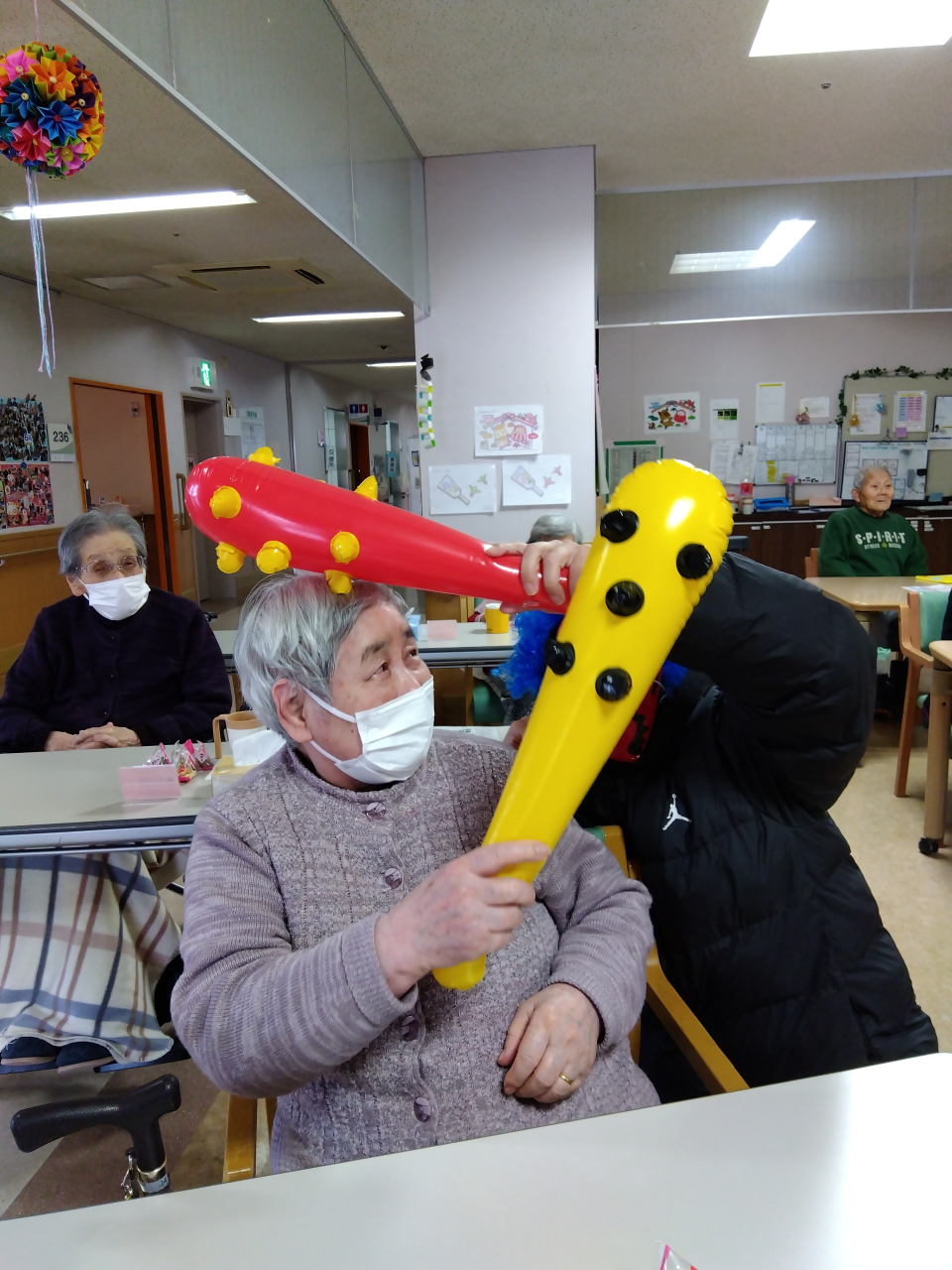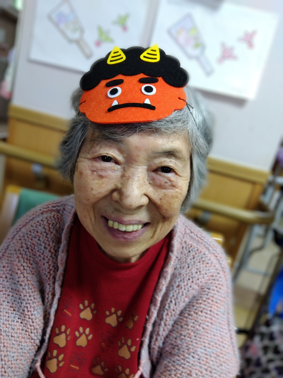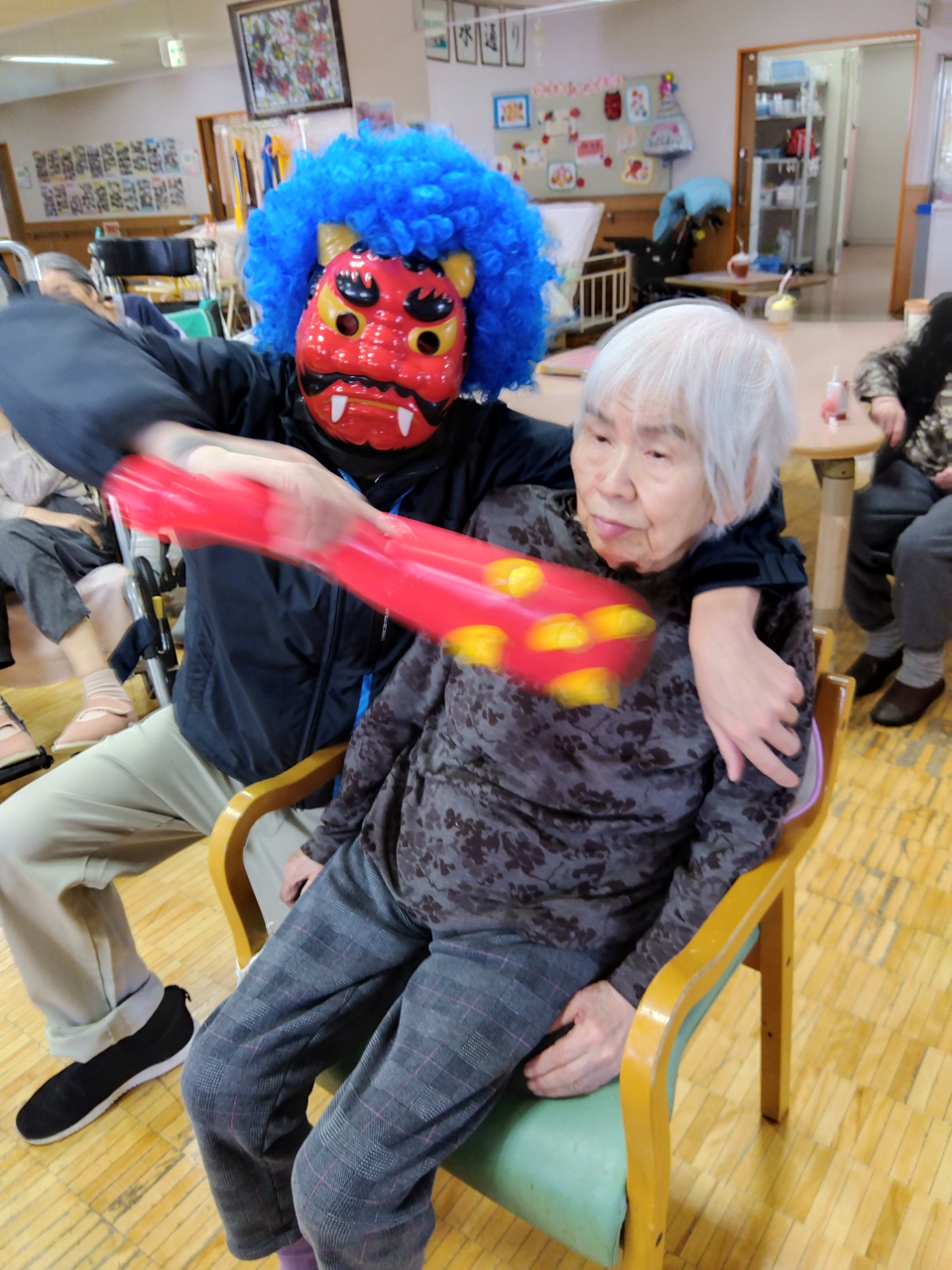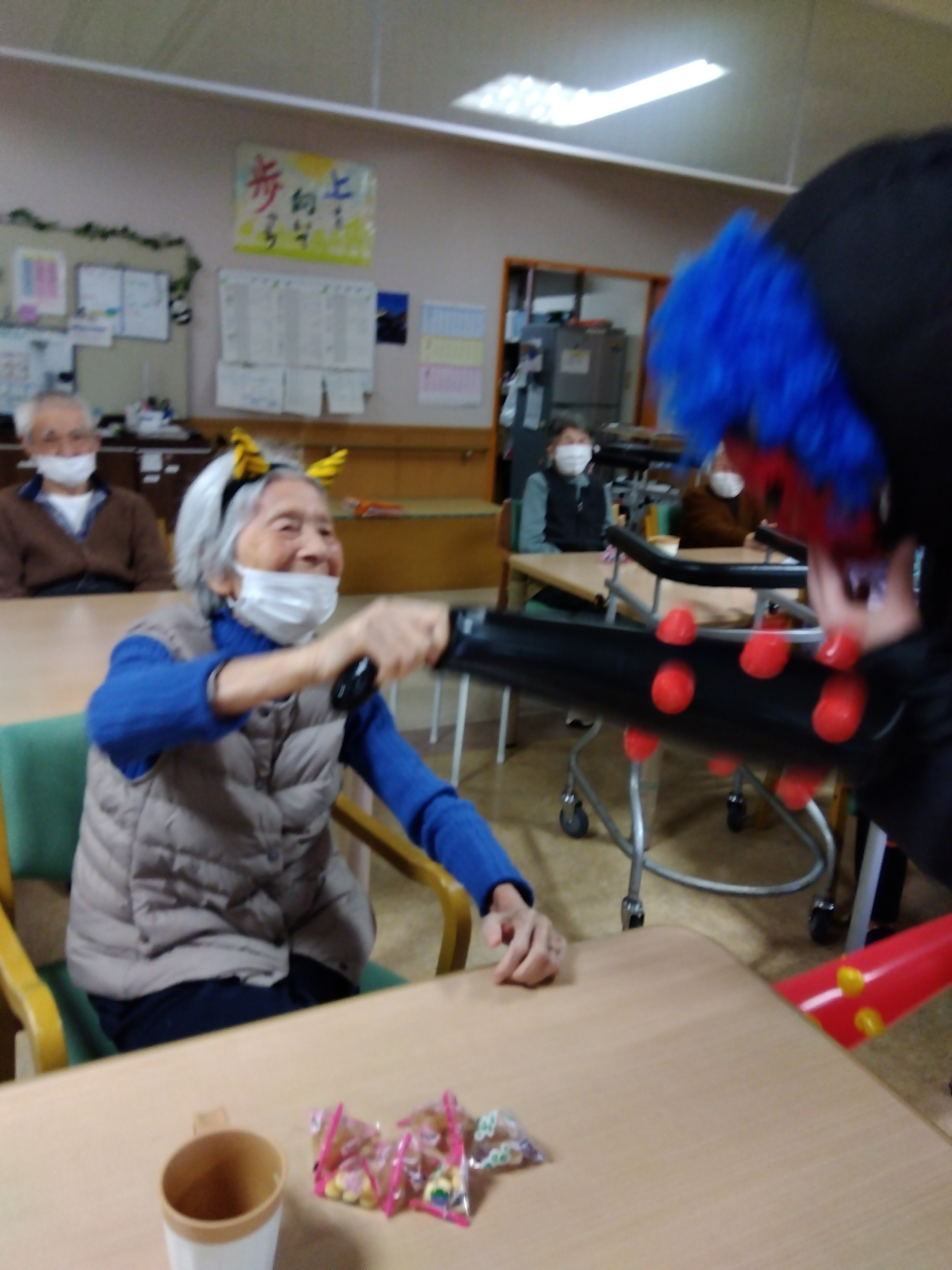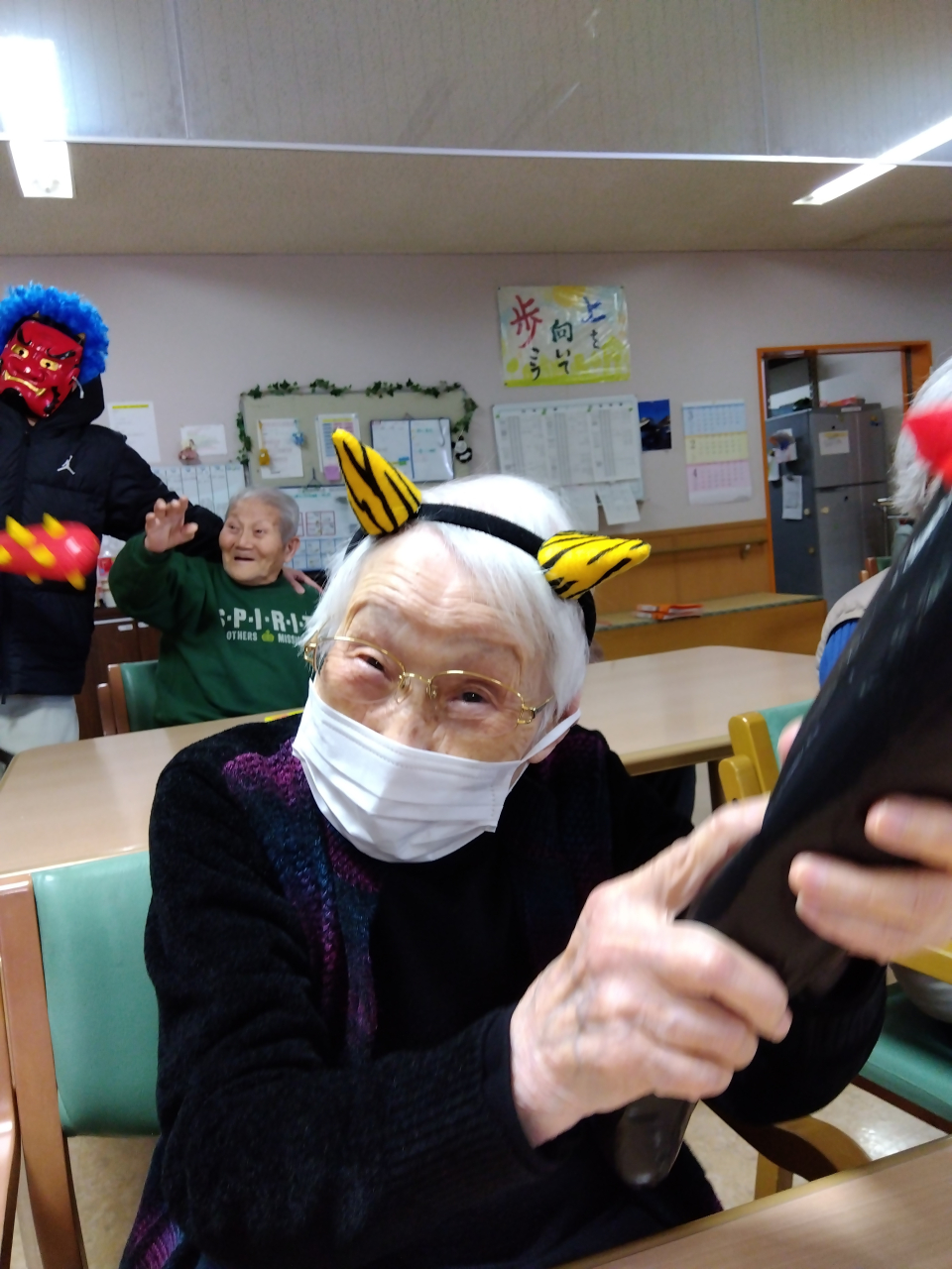 今年も節分行事を行い、豆まきで邪気を追い払いました